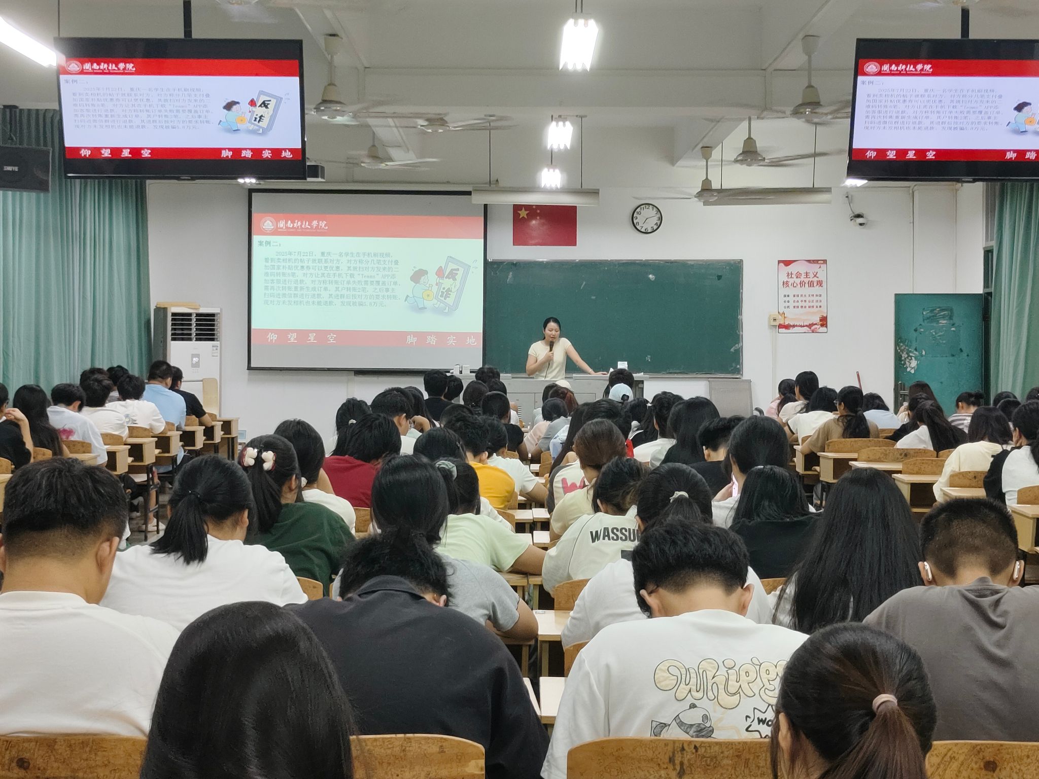 活动伊始,各专业辅导员结合新学期特点,先向同学们强调安全与学风建设工作的重要意义。随后,辅导员围绕安全主题展开科普:既通过内容展示,介绍基孔肯雅热预防、防诈骗、交通安全、消防安全等知识,又结合“骗子冒充学校老师以‘缴纳教材费’诱导扫码转账”的最新案例,剖析诈骗套路,提醒学生警惕“兼职刷单”“冒充客服退款”等骗局。同时,辅导员还讲解交通安全要点,要求学生严守交规;科普消防知识,明确用电、用火安全规范。之后,辅导员将重点转向学风建设,带领同学们学习学校考试规章制度,强调诚信考试的重要性,并介绍了迎评工作的重要性,鼓励大家积极参与。最后,辅导员针对新学期个人规划提出建议,鼓励同学们制定学习计划、保持规律作息。