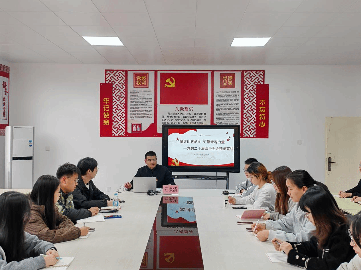 为深入学习贯彻党的二十届四中全会精神,12月19日,学院党委书记汪秉清以《锚定时代航向,汇聚青春力量》为题,为全体学生党员讲授专题党课。