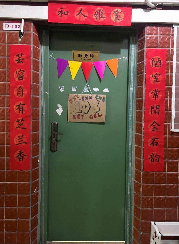 “家族”二字,褪去了宿舍的疏离感,添上了和谐温馨、亲如一家的归属感,象征着我们不是独自绽放的个体,而是并肩成长的集体。在这里,我们互相扶持、携手共进,把宿舍空间,打造成了充满暖意的心灵港湾。