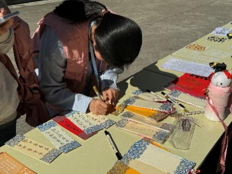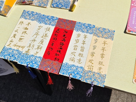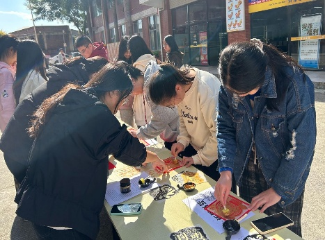 活动伊始,同学们完成整体策划与现场布置,精心划分启智区与巧手区,营造出兼具传统韵味与互动活力的活动氛围。随后,同学们分工协作、有序推进:启智区的同学引导参与者畅游灯谜天地,在思辨与欢笑中传递知识、启迪智慧;巧手区的同学耐心协助参与者体验传统拓印技艺的独特魅力,在一枚枚书签上认真书写祝福、精心点缀装饰,让美好寄语与传统文化交相辉映。大家全情投入,在一句句指引、一次次拓印、一笔笔书写中传递温暖、践行服务初心。最后,大家共同展示灯谜答案、拓印作品与装饰书签,现场洋溢着成就感与喜悦之情,氛围温馨融洽。
