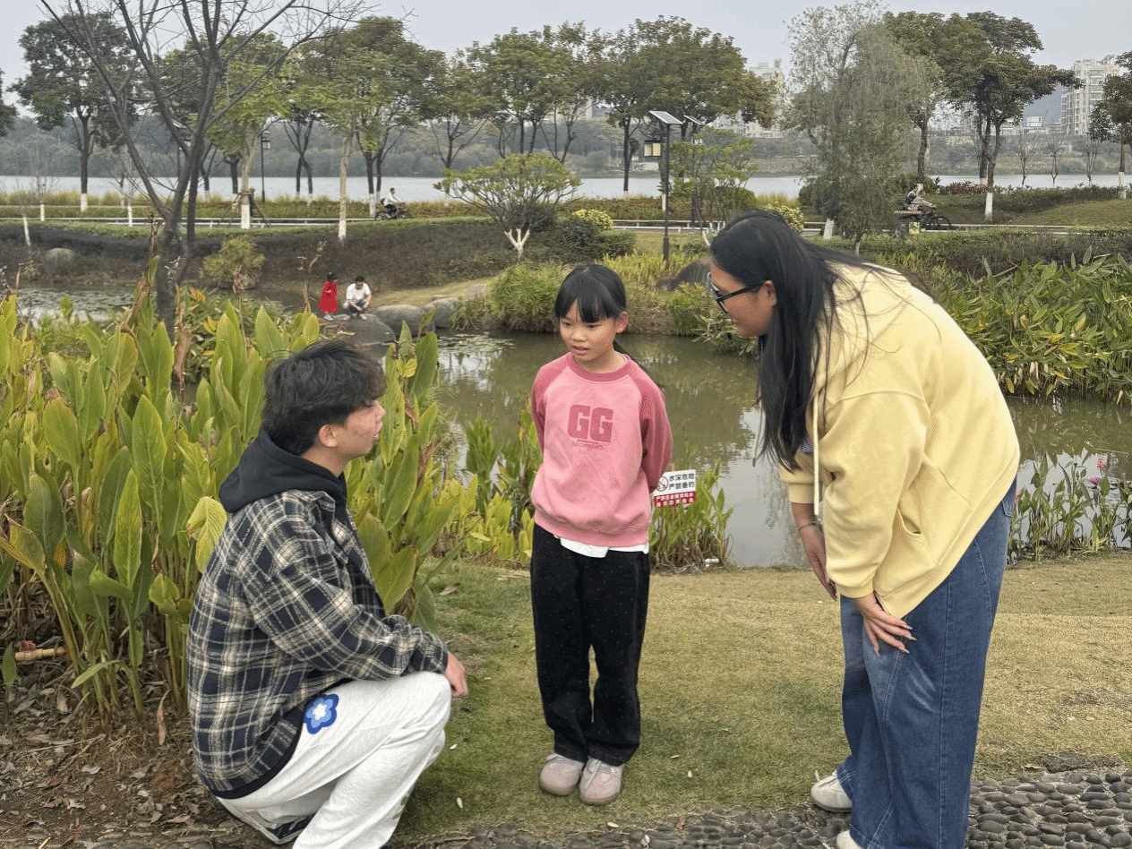 活动伊始,同学们集体解读“十五五”绿色规划中关于生态保护、低碳发展的核心内容,分享交流自身对“十五五”绿色规划的理解。随后,同学们结合湿地公园的生态实景,用中文与英文双语为南安市高中学生解读“十五五”绿色规划中关于生态保护、低碳发展的核心内容,通过现场讲解与实景对照,让抽象的规划理念变得具体可感。最后,同学们围绕“如何践行绿色生活”展开讨论,并与小朋友、家长们一同交流对“绿色发展”的理解,在交流中加深了对绿色发展的思考。