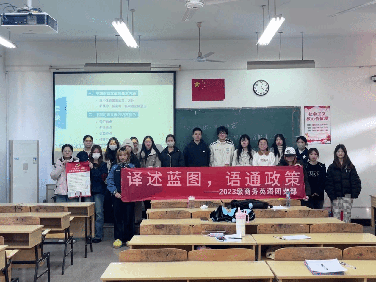 为聚焦“十五五”规划核心要义,夯实商务英语专业基础,提升青年学子政策理解与对外传播能力。1月4日,我院2023级商务英语团支部于启慧楼2-401教室开展“译述蓝图・语通政策”——“十五五”规划双语解读工作坊主题团立项活动。